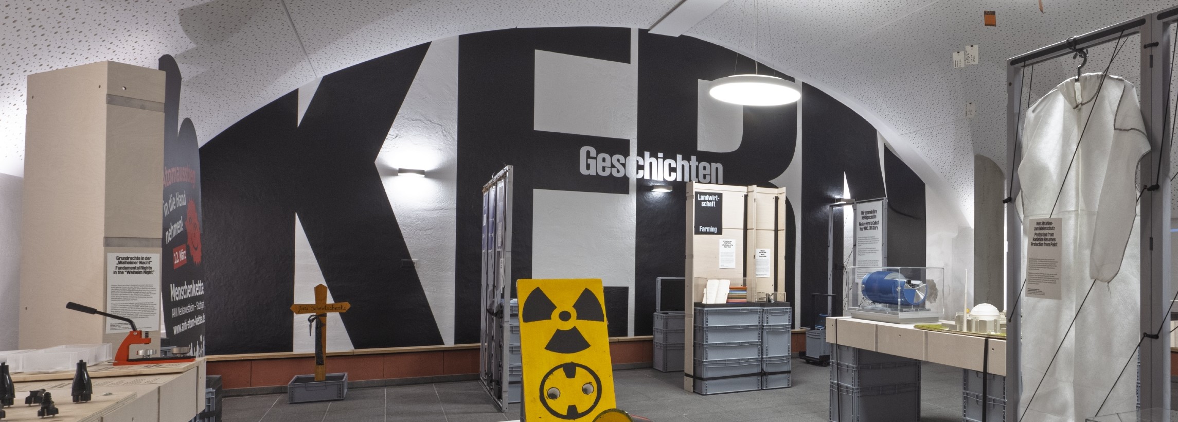 Das POP-UP-MUSEUM KERNgeschichten präsentierte in der Alten Kelter in Gemmrigheim eine Materialauswahl aus dieser so entstandenen temporären Sammlung. Darüber hinaus war das POP-UP-MUSEUM Begegnungsort für den Austausch von Einzelpersonen und Initiativen aus dem breiten Spektrum von Kernkraftbefürworter*innen bis Atomkraftgegner*innen der Region. Und es verband klare, gegensätzliche, nachdenkliche, widersprüchliche und sich verändernde Positionen letztlich in einem Raum. So vernetzten wir das unter den Bürger*innen vor Ort vorhandene Wissen neu, denn wir reduzierten die gesammelten Alltagsobjekte und damit verbundene Bedeutungszusammenhänge gemeinsam mit den Teilnehmer*innen auf ihre inhaltliche Kernaussagen und kreuzten sie mit anderen Objekten und Wissensbeständen, bzw. setzten sie zueinander in Bezug. Es entstanden neue Beziehungen und Dialoge zwischen den kollektiven und individuellen lokalen Geschichten.