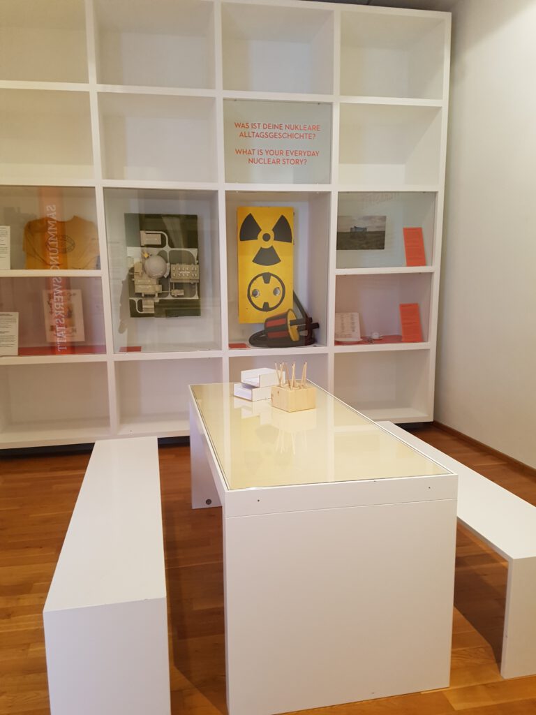 Damit war der Abbau des POP-UP-MUSEUMS auch nie das Ende für uns Projektbeteiligte. Denn es geht weiter: Im Museum der Alltagskultur ist seit November 2025 bis 2027 die Sammlungswerkstatt „Nuklearer Alltag“ geöffnet. Einzelne der temporär gesammelten Alltagsobjekte im Verlauf des POP-UP-MUSEUMS sind in die Sammlung des Museums aufgenommen worden. Die Sammlungswerkstatt lädt Besucher*innen dazu sein, den neuen Sammlungsschwerpunkt „Nuklearer Alltag“ mit eigenen Gedanken und Objekten mitzugestalten und weiterzuentwickeln.